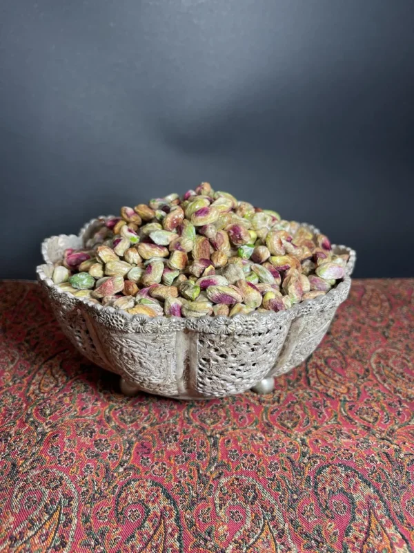 Shelled round pistachio kernels, ready for processing and consumption. These premium kernels are carefully extracted from the finest round Iranian pistachios, ensuring maximum freshness and